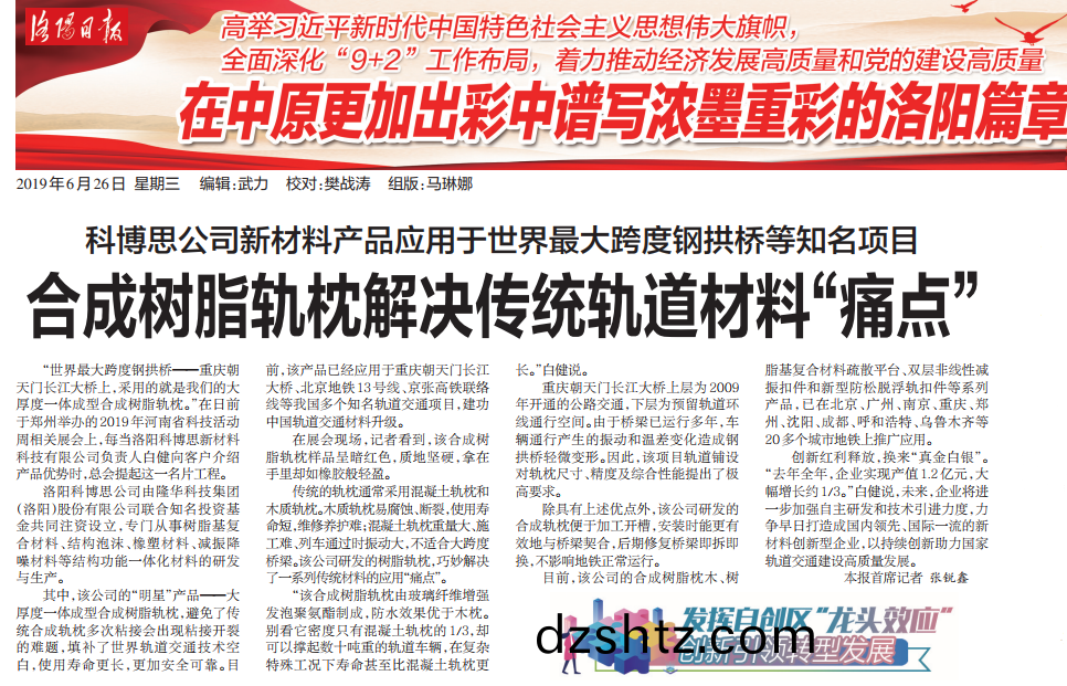 官宣:郃成(cheng)樹(shu)脂(zhi)軌枕解決(jue)傳(chuan)統軌道材料“痛點”-----洛陽科愽(bo)思新材料(liao)科技有限公司接受《洛陽日報》專訪